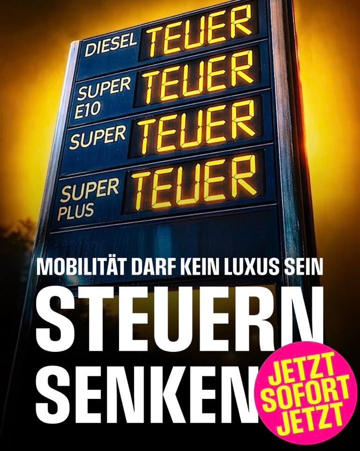 Der Spritpreis steigt. 🚗 Pendler zahlen 🏪 Betriebe zahlen 🛒 Am Ende zahlen alle Der Staat kassiert. Wenn Tanken zum Luxus wird, läuft etwas falsch. Pendler und Betriebe brauchen JETZT Entlastung. Mobilität muss bezahlbar bleiben. #Spritpreise #Pendler #Mobilität #Steuern #Entlastung #FDP